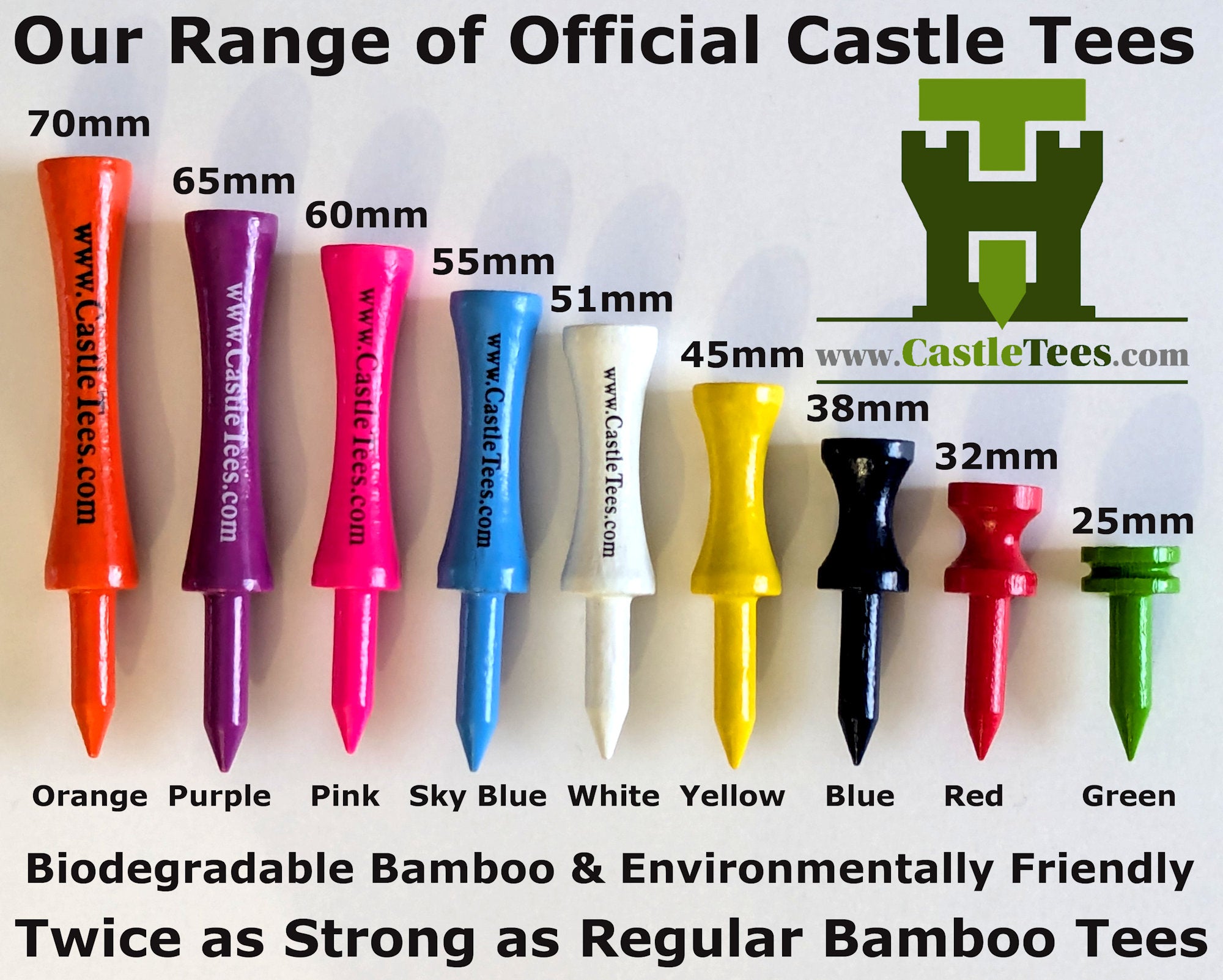 3.⛳ ✔️ Castle Tees are made exclusively from Moso bamboo which is TWICE as strong as the average bamboo species, has a higher tensile strength than steel and is more than FOUR times stronger than hardwood, meaning they last longer than most Tees and do not break easily! Castle Tees premium bamboo golf Tees are very strong, very durable and biodegradable, making them a more environmentally friendly alternative to plastic and hardwood Tees.