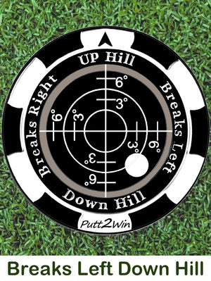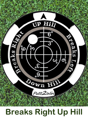 The Further the White Bubble is from the Centre of the Green Reader the Greater the Break / Slope. The more you use the Putt2Win Green Reader, the more Confident your Putting will become and the More Putts you will Hole.
