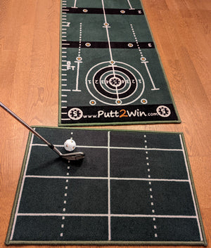 The Putt2Win mat has been expertly designed to provide 4 putting or chipping games that will challenge all players and improve your feel, focus and distance control to sharpen your short game skills the more you use the mat.