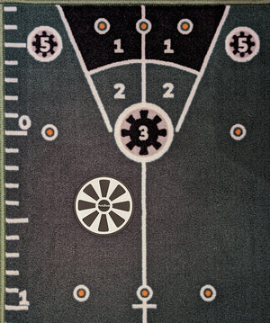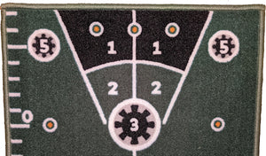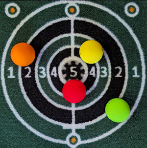Optional Play: Stand the target backstop on the floor beyond the mat and the curling circles. Any players that knock the backstop over with a ball are deducted 5 points, helps to encourage playing with an element of caution.