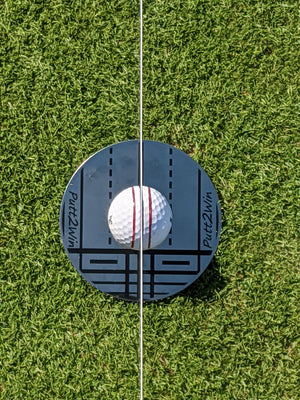 If you have purchased the Pro Putting String Set you will also receive the Putt2Win Mirror, Ghost Hole & Ball Stencil with Marker Pens. Use the Mirror as shown lining up the lines on the mirror with your putting string which will give you great lined visuals to putt the ball along. Square your Putter Face against the lines on the mirror to ensure your putter is square to target and use the lines drawn on the ball which will guide you to roll the ball to the target.