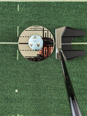 Use the Mirror as shown with either a regular golf ball or your Flat golf ball lining up the lines on the mirror to your target giving you great lined visuals to putt the ball along, lines to ensure your putter is square to target and, if you want, lines on the ball to align to the target.